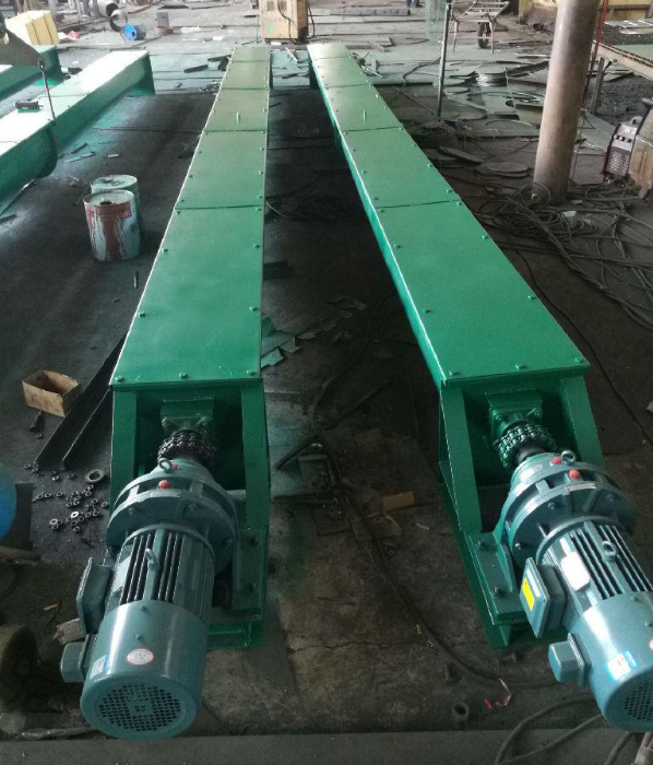 由驱动装置封闭槽箱和螺旋组成借螺旋转动将槽箱内的煤推移输出。