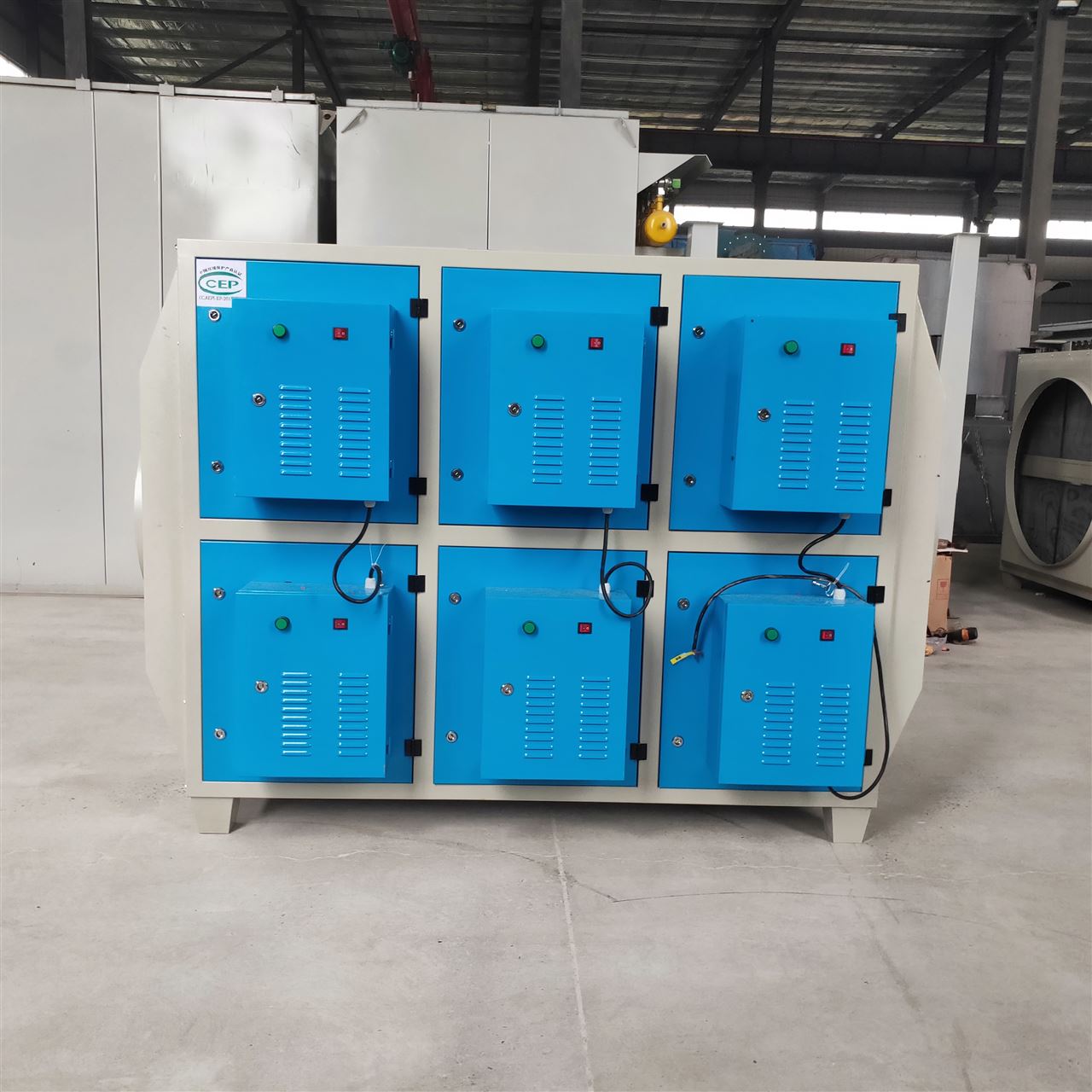 低温等离子体是继固态、液态、气态之后的物质第四态,当外加电压达到气体的放电电压时,气体被击穿,产生包括电子、各种离子、原子和自由基在内的混合体。放电过程中虽然电子温度很高,但重粒子温度很低,整个体系呈现低温状态,所以称为低温等离子体。低温等离子体降解污染物是利用这些高能电子、自由基等活性粒子和废气中的污染物作用,使污染物分子在极短的时间内发生分解,并发生后续的各种反应以达到降解污染物的目的。一般气体放电,将会产生等离子,而这种放电现像就是通过某种机制使一个或者多个电子从气体原理或分子中分离出来,形成气体媒质,这种媒质就称为电离气体,如果外电场产生了电离气体,传导电流就形成了,这种现象就被称为气体放电。而这种净化设备的技术,就是工业废气处理新的一种原理。